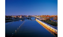 克拉瑪依河又名穿城河,克拉瑪依市區(qū)境內(nèi),交通極便利。克拉瑪依河從城區(qū)東北入境,在城中曲折穿越后城區(qū)西南進入西郊水庫,全長8.51千米,河寬約15米。友誼橋是進入克拉瑪依市的門戶,橋主體魏斜拉橋,風格獨特,美觀精巧。全橋采用高桿燈及彩球射燈照明,塔柱安裝霓虹軟管裝飾燈,斜拉索安設(shè)跑燈帶,成為克拉瑪依河上一重要的景點。其余四座交通橋為準葛爾橋,昆侖橋,勝利橋,和西環(huán)橋。