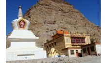 阿貴廟位于蹬口縣沙金套海蘇木境內的狼山山脈中,坐落在漢代古城雞鹿塞西邊的溝內,是內蒙古地區紅教喇嘛的唯一寺廟。蒙古語意為有山洞的廟。占地1500畝。清朝定名為“宗乘寺”。為典型藏式建筑,順山勢建成大雄寶殿及陪殿,共981間。阿貴廟奉其創始人印度僧蓮花生為祖師。