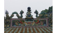 關帝廟位于廣東省鶴山市共和鎮大凹村。原廟已于100多年前圮廢,現存為光緒二十二年(1896)在原址上重建的。1948年修葺過一次。廟由山門、正殿、廂房組成,面積280平方米。營造手法與佛山祖廟相似,正殿屋頂為綠色琉璃瓦,屋脊以陶塑圖像裝飾,屋煞為光緒年間石灣名工燒制之二龍戲珠。