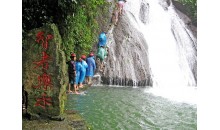景區是以地下涌泉采匯集形成的多極串連瀑布,瀑布比漓江水位還高180米,尚能噴涌、是全國唯一一個由地下涌泉來形成的多級串連瀑布;是一個因鈣活華沉積作用可逐漸長高而改變景致的瀑布;九級瀑布形態各異,有的如鴛鴦戲水,有的如蛟龍噴水,有的在長滿青苔的巖壁上,瀑水如布,水紋清晰可鑒,呈白色透明狀,猶如噴霧行云;有的水流集中下注跌入深潭濺起層層水霧浪花,猶如細雨蒙蒙,瀑布兩岸林木蔥郁,蔭蔽幽靜,水質清洌透明,涼爽甘甜。